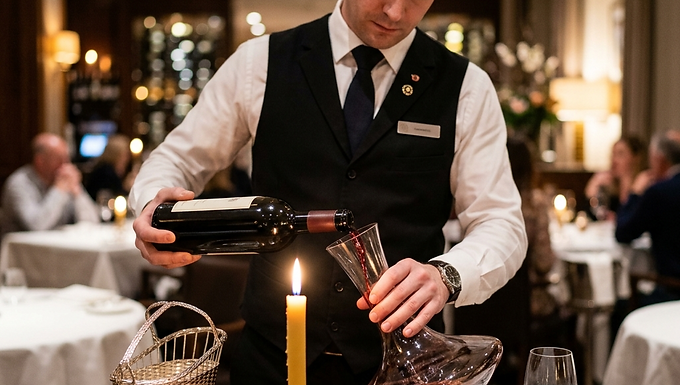 After presenting wine to the guest, wine can be opened and decanted at the nearest side station
