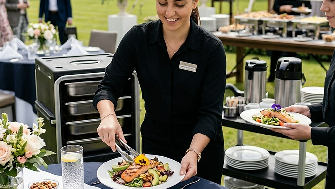 That outside caterings are set up properly, complete with clean and the correct equipment.