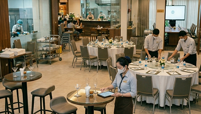 Set the tables, you will need to check the BEO for the details of what you will need to set.